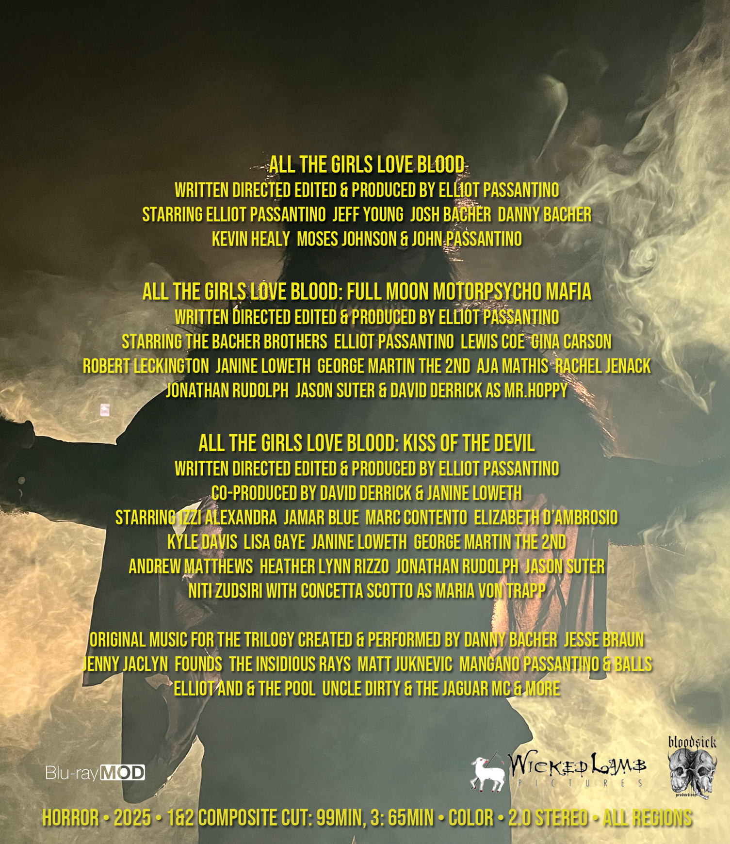 "All The Girls Love Blood" (2004) & "All The Girls Love Blood: Full Moon Motorpsycho Mafia" (2023) Composite Cut. The original ATGLB was shot on video over 20 years ago. The surviving footage has been edited together with the decades later sequel to become one epic supernatural gangster comedy. (99 mins.)