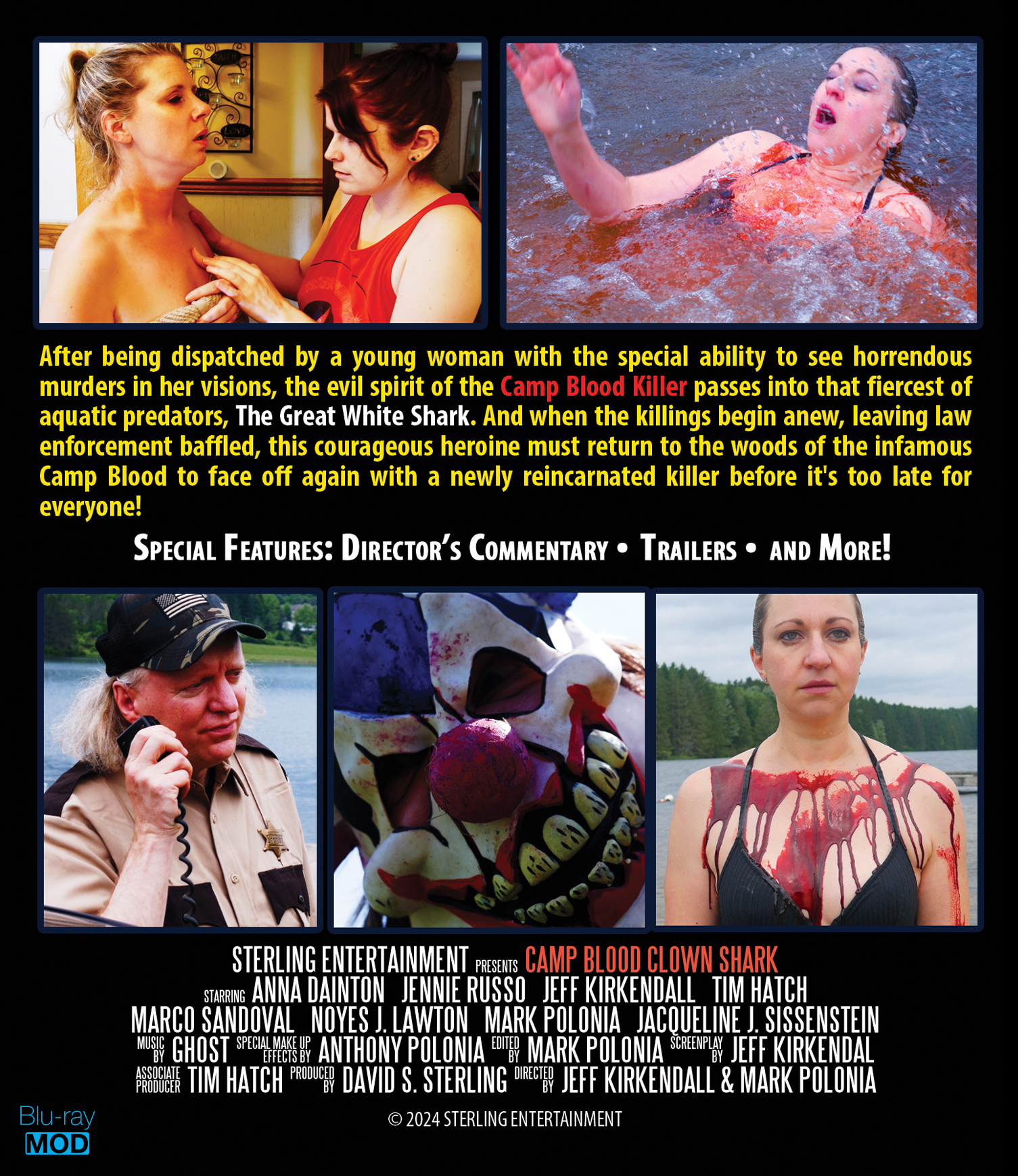 After being dispatched by a young woman with the special ability to see horrendous murders in her visions, the evil spirit of the Camp Blood Killer passes into that fiercest of aquatic predators, The Great White Shark. And when the killings begin anew, leaving law enforcement baffled, this courageous heroine must return to the woods of the infamous Camp Blood to face off again with a newly reincarnated killer before it's too late for everyone!