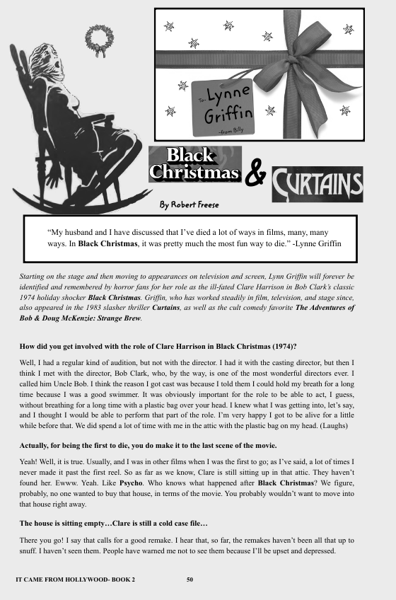 It Came From Hollywood Book 2 celebrates the slasher era with eight exclusive interviews with the people who made those films and a couple of 21st-century purveyors who keep that spirit alive: Bud ("The Mutilator," "Mutilator 2") Cooper, Lynne ("Black Christmas" ’74, "Curtains") Griffin, Richard ("Splatter University") Haines, Sandy ("Halloween" ’78) Johnson, Katherine ("Sleepaway Camp," "Silent Madness") Kamhi, David Howard ("Terrifier," "Terrifier 2") Thornton and Mitch (Knucklebones) Wilson. The Slasher Celebration continues with Slash-O-Rama: The Slasher Films of 1981, Uncle Dan’s 3-D slashers, The Cannon Group Slashers, Forgotten Slashers, Maniac ’80 vs. Maniac ’12, The Slasher City Jukebox, VHS Spotlight: Slasher Edition and Slasher Movie Novelizations. Also featuring Streets of Fire, Hollywood Bookshelf, I Infiltrated the Film Set of The Blues Brothers, Beyond the Screen: Blues Brothers edition, Live for Life: The Soundtrack, Home Grown Horrors Volume One, Jaws and a 21-page reprint of the complete My Bloody Valentine Press Kit. Contributing writers include Tim Ferrante, Robert Freese, Dave Fusaro, Paul Mcvay, Jim Rex, George Seminara, JE Smith and Scott Voisin.