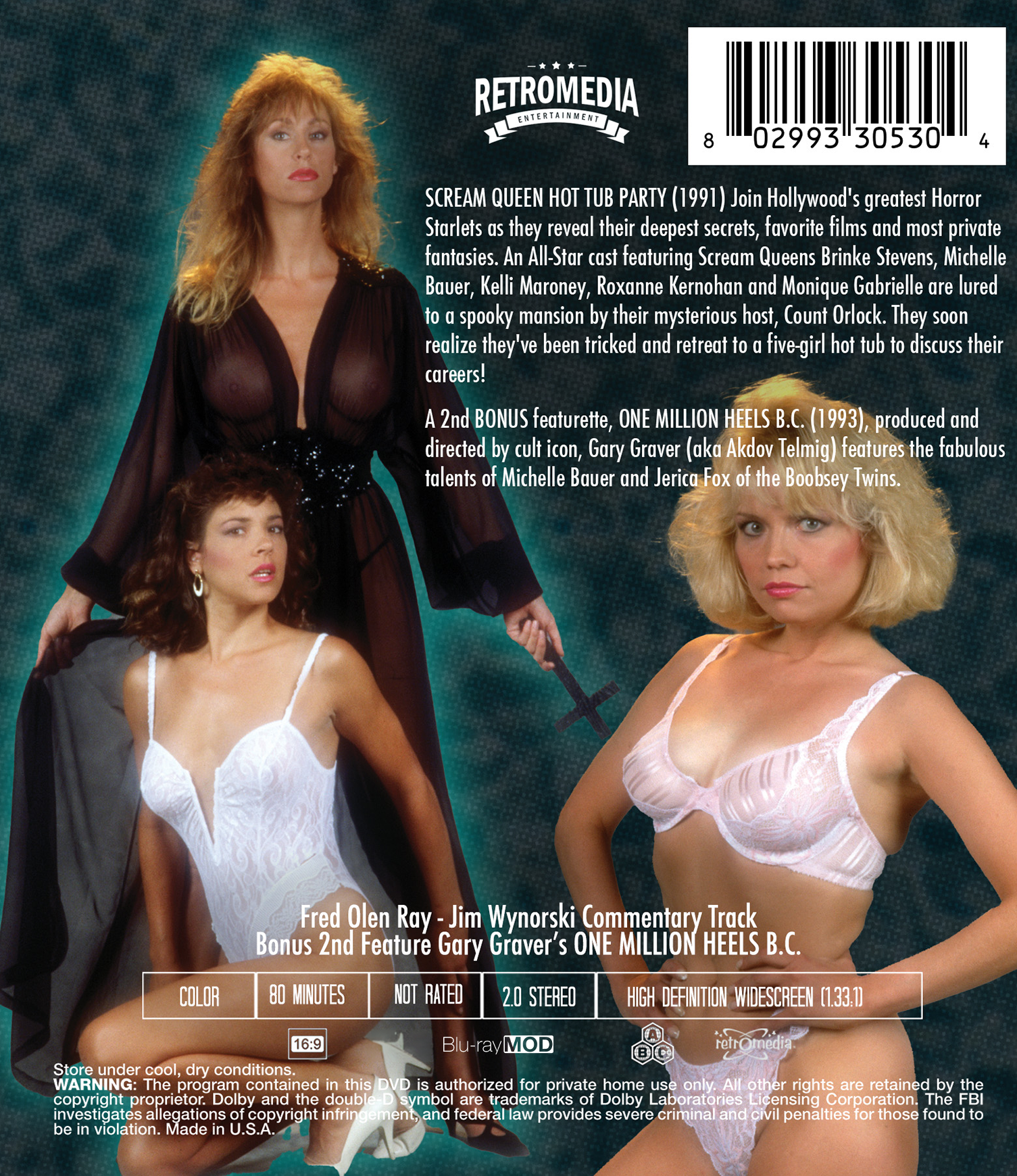 A 2nd BONUS featurette, ONE MILLION HEELS B.C. (1993), produced and directed by cult icon, Gary Graver (aka Akdov Telmig) features the fabulous talents of Michelle Bauer and Jerica Fox of the Boobsey Twins.