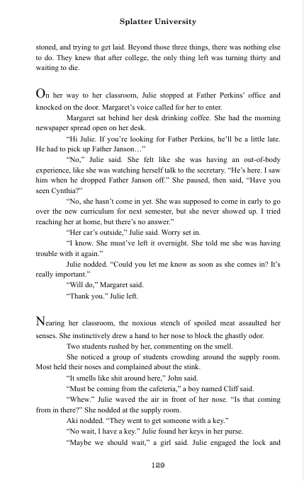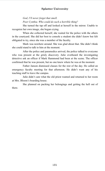Adapted from the original screenplay by Richard W. Haines, this is "Splatter University" like you’ve never experienced it. Combining all the character scenes that solidified the film’s cult status, with additional scenes of outrageous bloody murder and mayhem, Splatter University: The Novelization strives to put the 'splat' in "Splatter University." Going beyond the boundaries of both the silver screen and good taste, Splatter University: The Novelization delivers the thrills Golden Age slasher fans are screaming for! Recommended for mature readers.